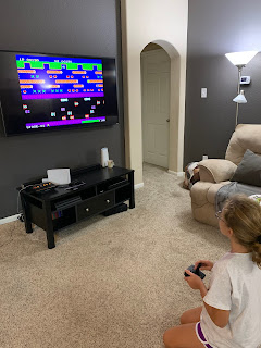 When you want to stay away from grocery stores and people because of the virus, you end up getting lots of things on Amazon. That means you have lots of boxes laying around. Claire decided she wanted to make a "School room" and went to work talking through how she would create it with the boxes. We planned it out in the garage and then assembled it in the house.