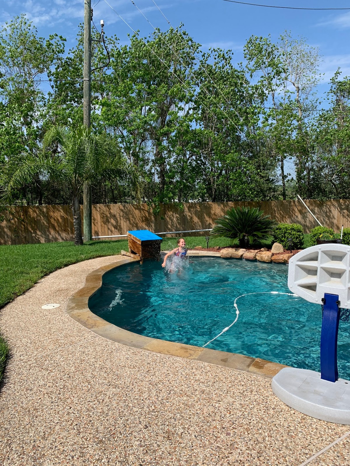 Once she has her schoolwork completed, it is time to have fun! So far she has finished everything except 30 minutes of reading within 2.5 hours so she has all afternoon to have free time. The pool was calling yesterday afternoon. Way too cold for Mom to get in but she had a blast and came up with some crazy games for me to judge her on! Loving this time to really get to disconnect and focus on this precious gift from God!